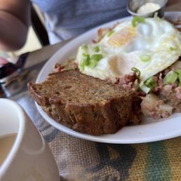My husband ordered a thick slice of banana bread with a side of butter after his meal. They warm it up!!!Holy f@ck so good. Thank you -